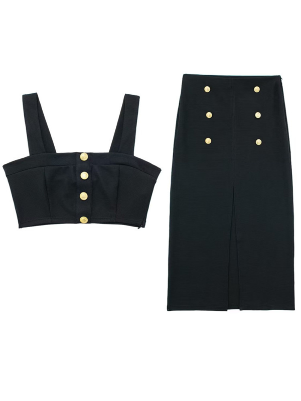 Sleeveless Crop Top & High-Waist Slit Skirt