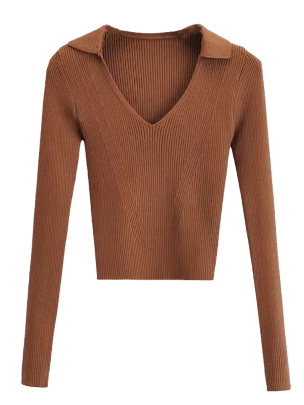 V-Neck Long Sleeves Knitted T-Shirt (6 Colors)