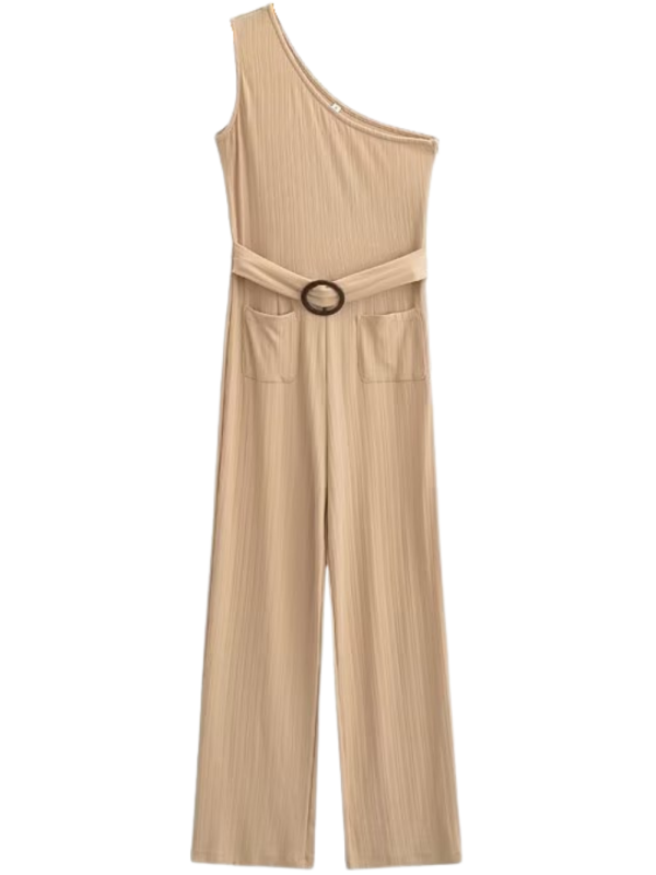 One-Shoulder High Waist Jumpsuit (2 Colors)