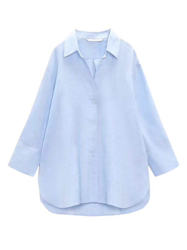 Long-Sleeved Collared Linen Shirt (2 Colors)