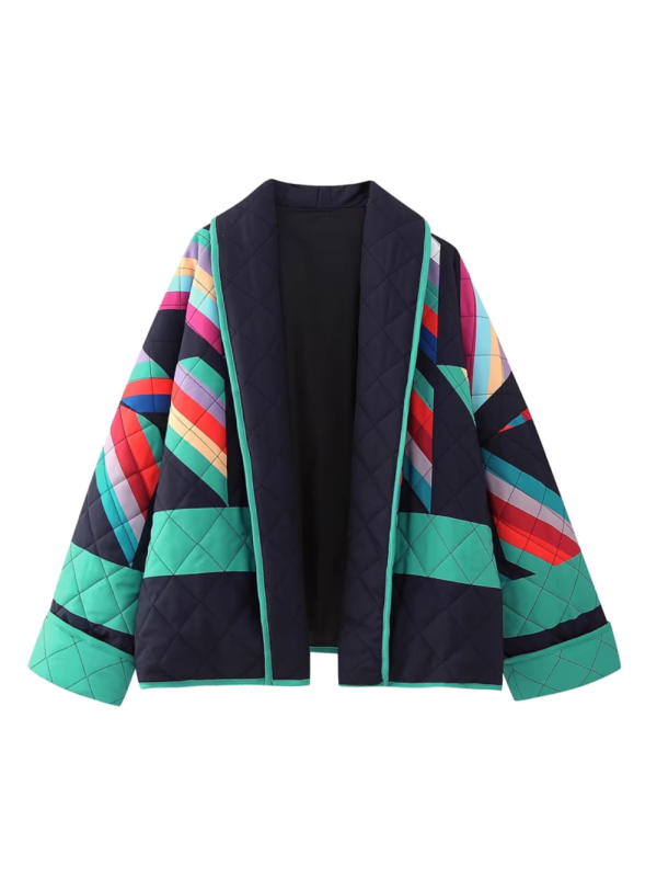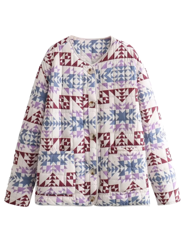 Round-Neck Rhombus Print Quilted Jacket