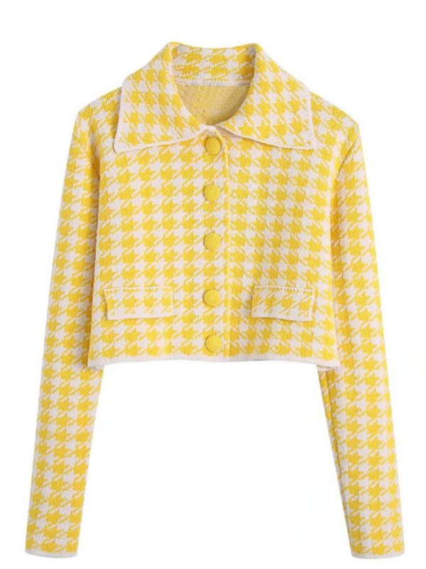 Houndstooth Short Knit Cardigan Jacket