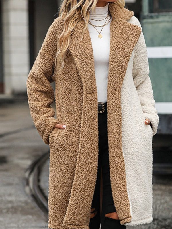 Color Block Dropped Shoulder Sherpa Duster Coat