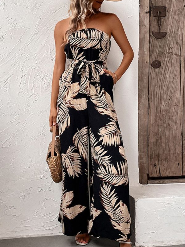 Printed Strapless Wide Leg Jumpsuit with Pockets