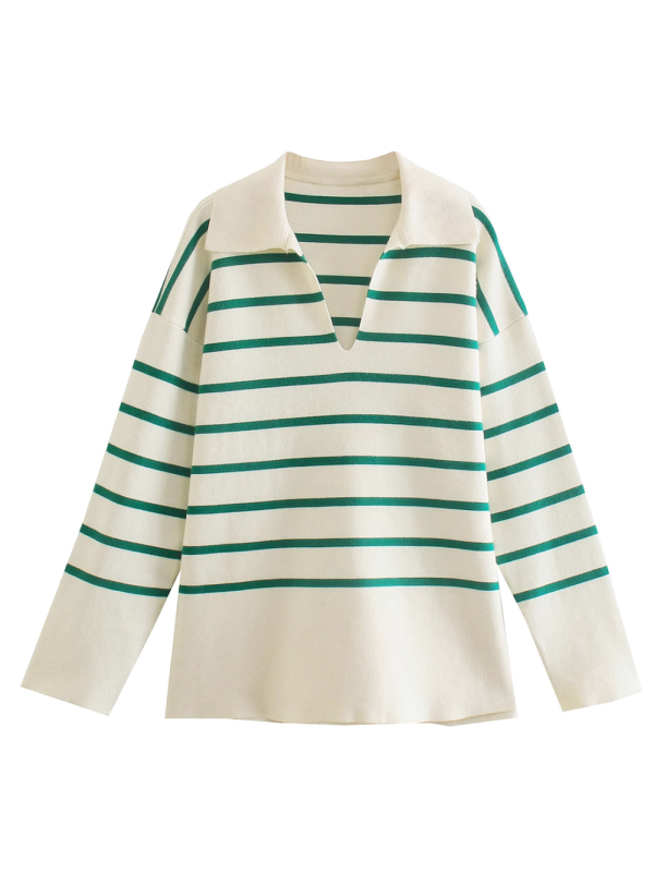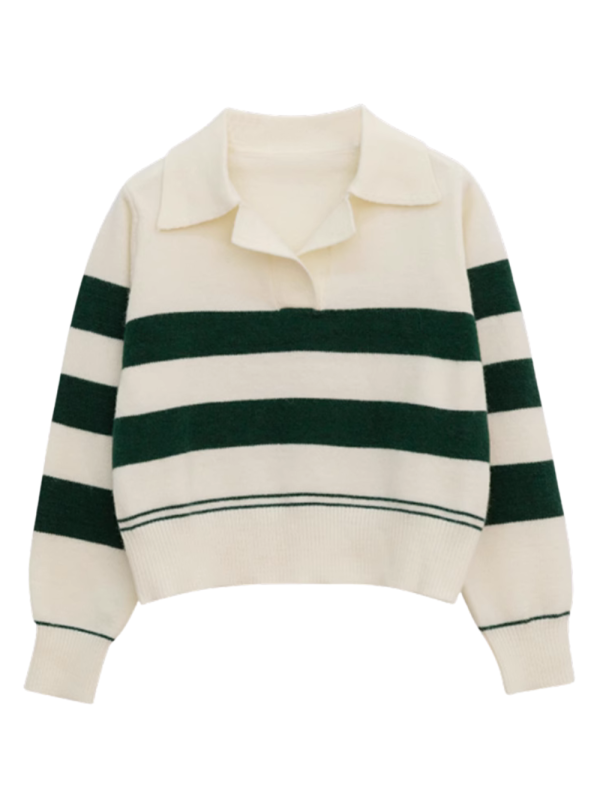 Collared Long-Sleeve Knitted Sweater (2 Colors)