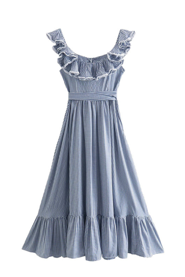 Gingham Ruffle Sleeveless Dress