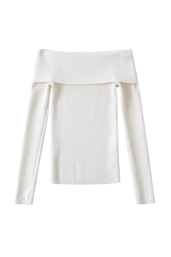 Off-Shoulder Knitted Long-Sleeved Top (2 Colors)