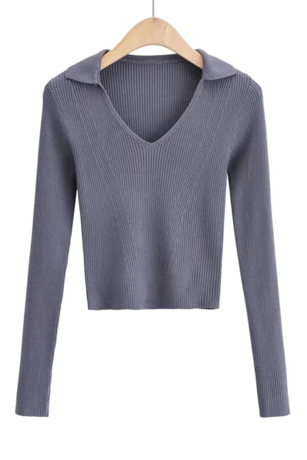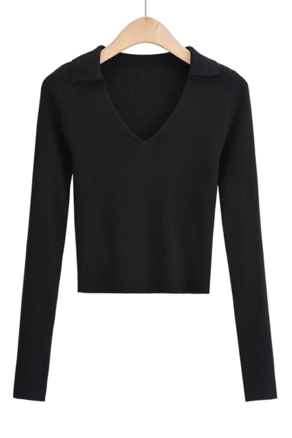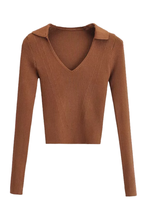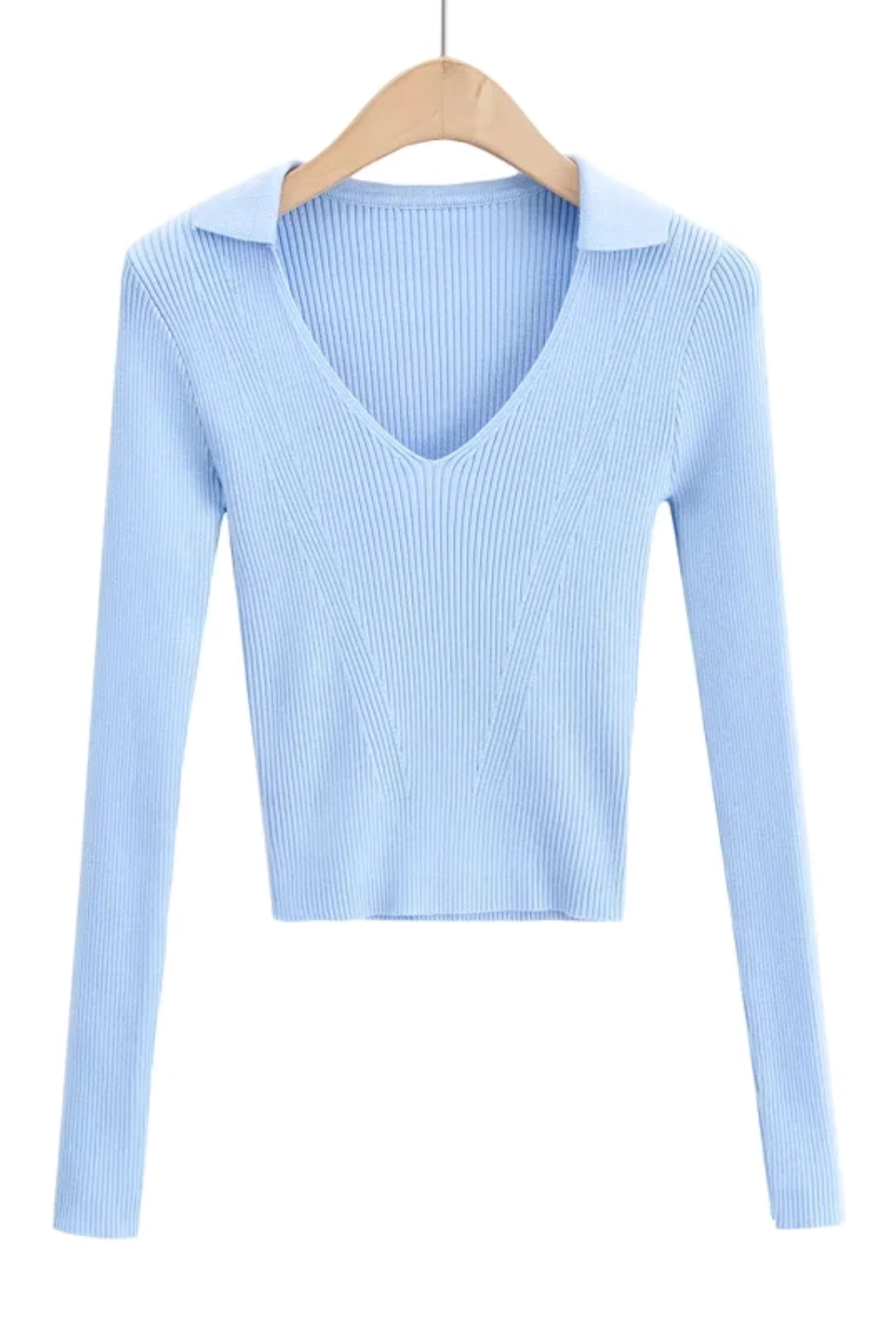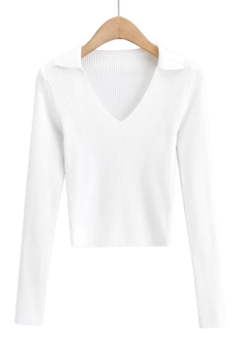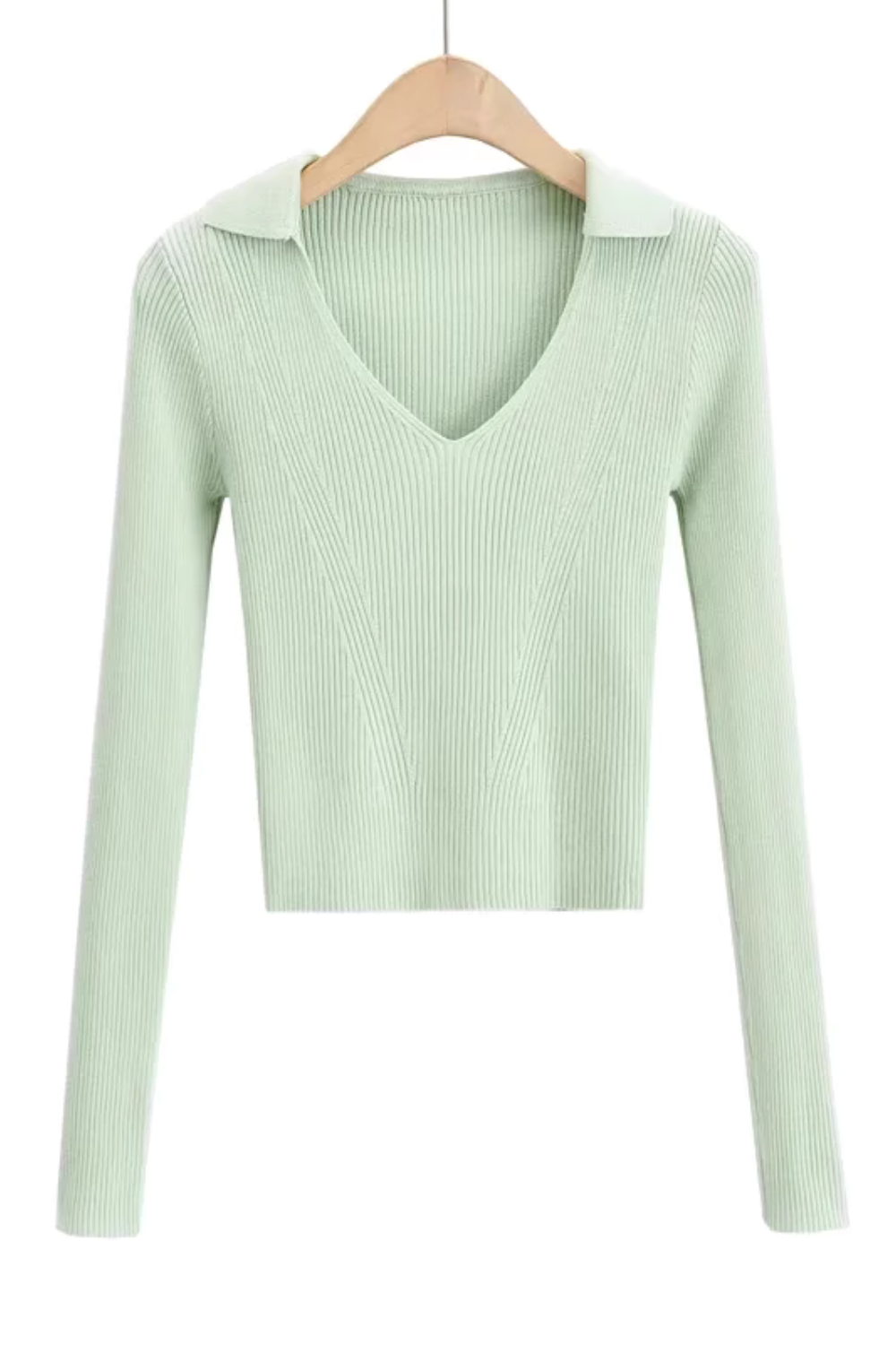 V-Neck Long Sleeves Knitted T-Shirt (6 Colors)